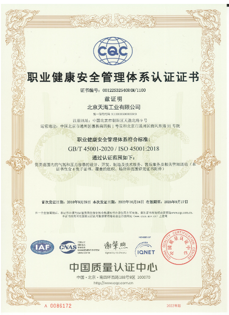 2010年-2015年,天海工業(yè)陸續(xù)建立了ISO14001和OHSAS18001環(huán)境和職業(yè)健康安全管理體系,整合了天海工業(yè)“三體系”,通過(guò)中國(guó)質(zhì)量認(rèn)證中心的認(rèn)證并取得證書(shū)。